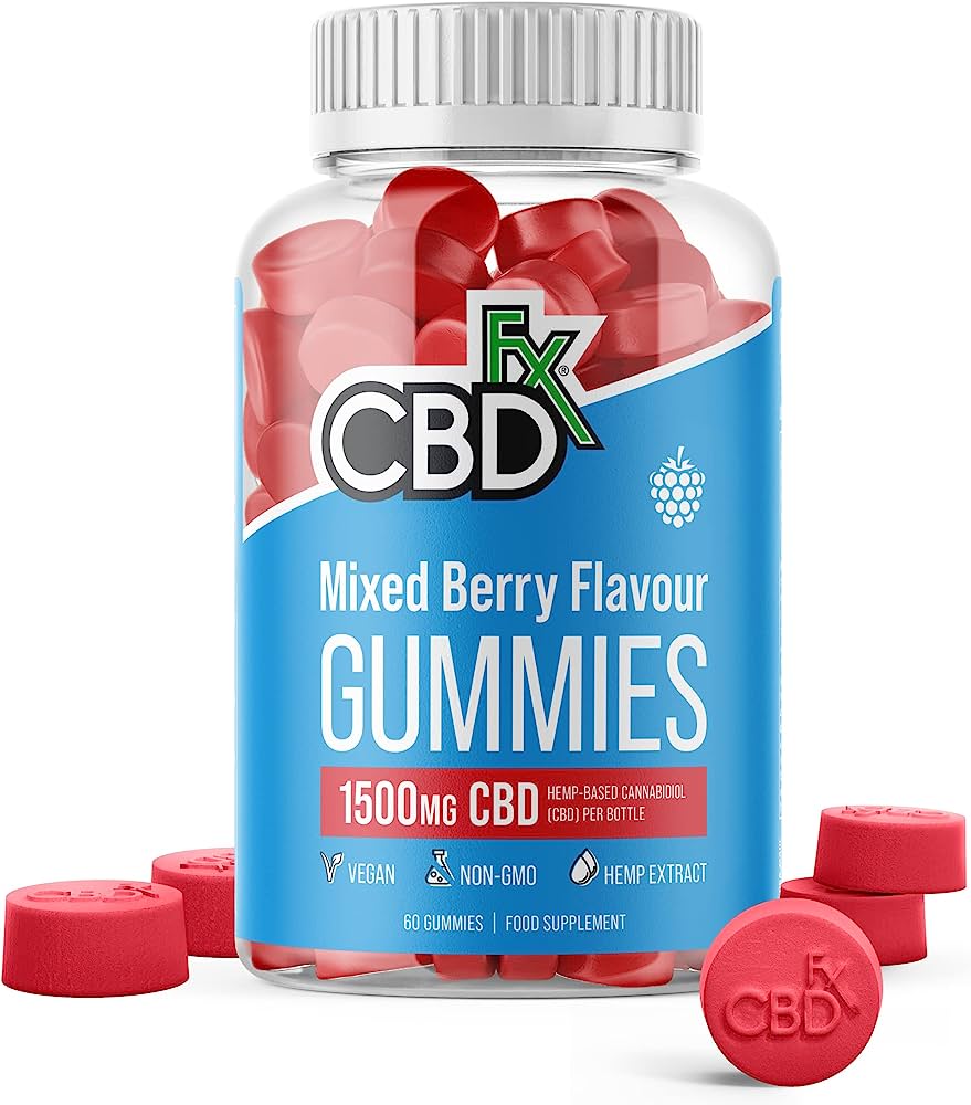 CBD gummies fra CBDfx med 1500mg CBD fordelt på 60 gummies.